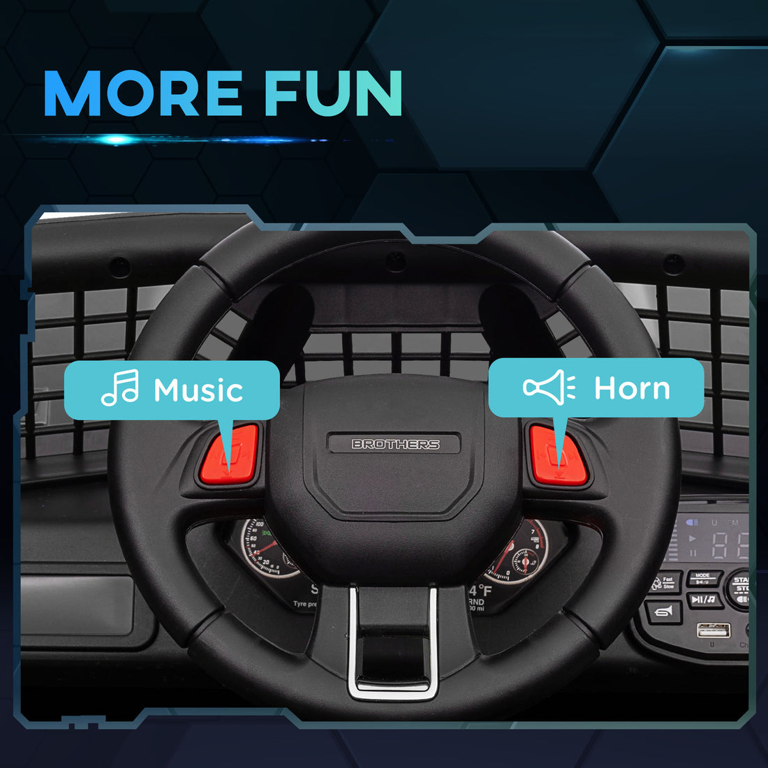Qaba 12V Ride On Truck, Battery Powered Kids Electric Car Utv With 4 Suspension Wheels, Remote Control, 3 Speeds, Led Headlights, Horn, Usb Music, Black Black Plastic