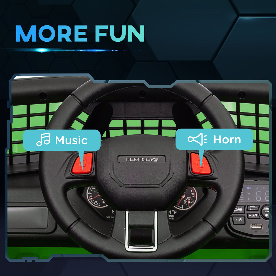 Qaba 12V Ride On Truck, Battery Powered Kids Electric Car With Parent Remote, 4 Suspension Wheels, 3 Mph Max Speed, Music, Horn & Led Lights For Ages 3 6 Years Old, Green Green Plastic